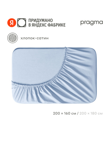 Простыня на резинке 200х160 см Pragma 26, снежный голубой, Яндекс Фабрика