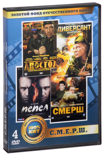 4в1 С.М.Е.Р.Ш.: Апостол. 01-12 серии / Диверсант: конец войны. 01-10 серии / Пепел. 01-10 серии / С.М.Е.Р.Ш. 01-04 серии (4 DVD)