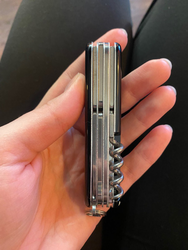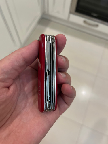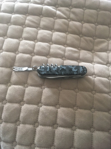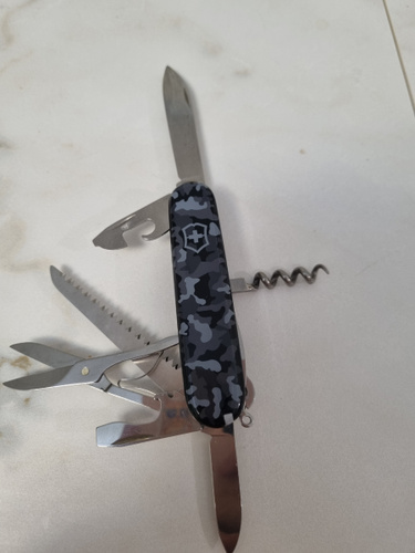 Оригинальный нож. Купил в подарок. Пользуюсь таким же больше 20 лет. Не раз выручала ножовка. Очень хорошие ножницы и пинцет. А сколько пробок открыл штопор.... И цена отличная.