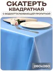 Скатерти с пропиткой от загрязненийСкатерть 145x145 см., цвет голубой, арт. ld-skat-square-1346-sky-04 изготовлена компанией Лайн Декор, из профессиональной скатертной ткани коллекции Ричард, состав ткани 50% хлопок 50% полиэстр, плотность ткани 236 г./м2. Эта ткань специально разрабатывалась фабрикой для ресторанов, кафе, гостиниц, что позволяет изделиям, сшитым из этой ткани выдерживать большое количество стирок без потери эксплуатационных свойств. Для окраса ткани используется стойкий краситель, который на протяжении всего срока службы сохраняет сочный, насыщенный цвет. С этой ткани легко отстирываются практически любые загрязнения. Ткань имеет водоотталкивающую пропитку и любые жидкости, пролитые на ткань, не впитываются в структуру волокон ткани, а как капельки ртути остаются на поверхности. Вам достаточно взять бумажную салфетки и удалить загрязнение. Данная пропитка сохраняет свои свойства на протяжении 25-30 циклов стирок, после этого периода, ее действие начнет ослабевать, но вы будете продолжать пользоваться изделиями, как и прежде. Обращаем ваше внимание на то, что скатерть поставляется не отглаженная и перед началом эксплуатации, рекомендуется ее отгладить утюгом, чтобы придать ей красивый внешний вид.