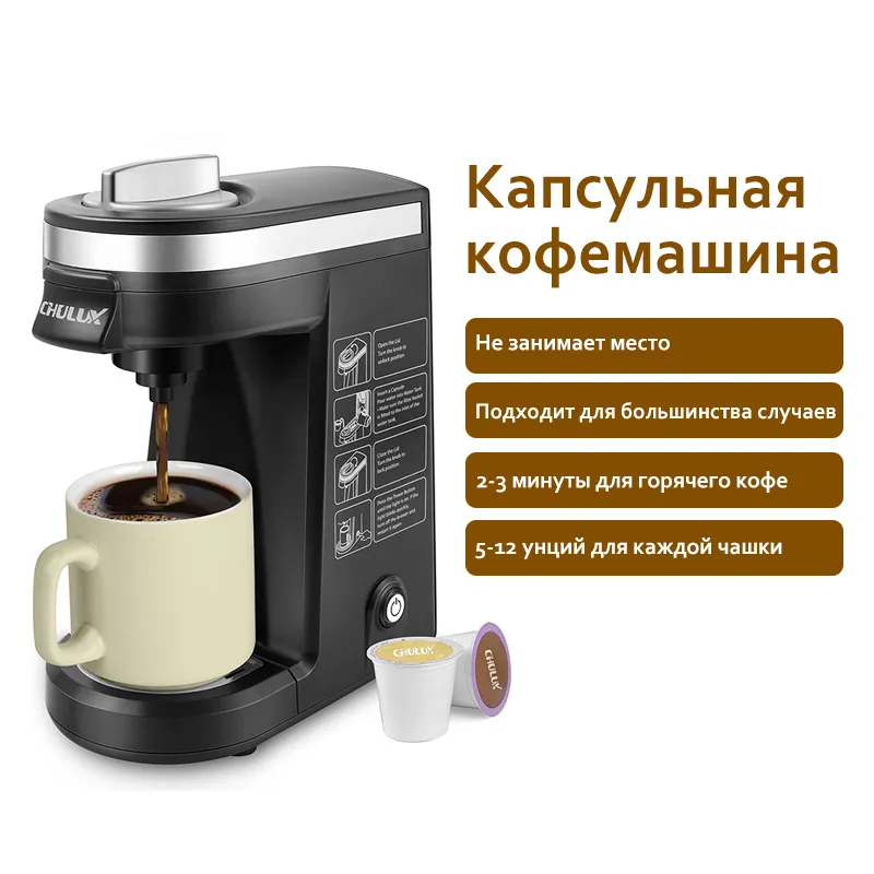 ОДНА ЧАШКА ВАШ ВАШ СПОСОБ ПРИГОТОВЛЕНИЯ1. Компактный дизайн Одна ручка и одна кнопка питания, просты в эксплуатации.