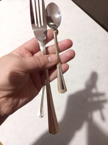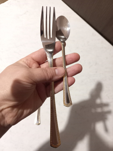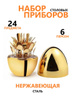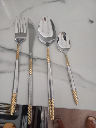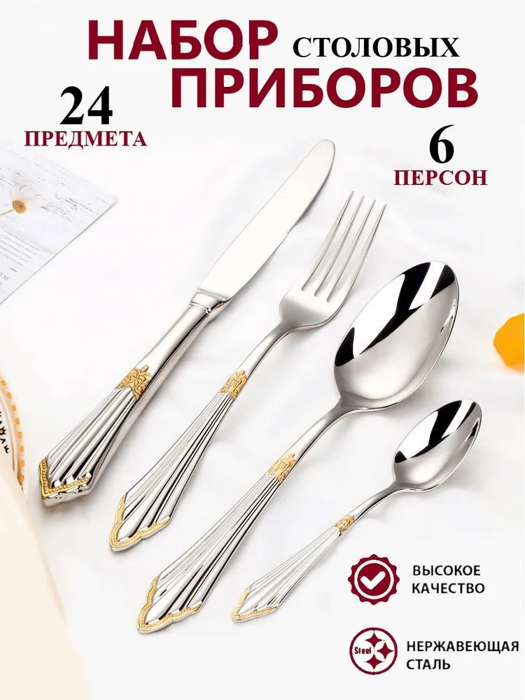 Набор столовых приборов из нержавеющей стали на 6 персон для кухни 24 предмета. Стильный набор столовых приборов - на 6 персон. Материал изделия пищевая нержавеющая сталь. Пищевая нержавеющая сталь сохраняет вкус и аромат продуктов не придавая им оттенка вкуса металла. Набор столовых приборов легко мыть как вручную, так и в посудомоечной машине. При мойке в посудомоечной машине после режима сушки сразу достать кухонный набор столовых предметов и протереть насухо мягким полотенцем. Этот кухонный набор посуды для столовой сервировки, станет настоящей находкой для любого кулинара и ценителя красоты. Изысканный дизайн и премиум качество делают этот чайный набор незаменимым атрибутом любого застолья. Посуда нашего набора, создаст неповторимую обстановку и придаст выразительность вашему интерьеру. Наш красивый подарочный набор посуды для кухни - отличный подарок на Новый год! Сделайте своим близким незабываемый подарок, маме, подруге или мужчине который они будут использовать и ценить каждый день. Включая все необходимые предметы для кухни столового сервирования, наш прибор ложек, вилок и ножей - это идеальное решение для любого приема пищи. Ложки и вилки из нашего набора столовых приборов обладают утонченным дизайном и удобной формой рукояток, что обеспечивает комфортное использование при сервировке и еде. Кухонные принадлежности отличный инвентарь для Вашего дома! Этот премиальный набор столовой посуды на кухню подойдет для любых домашних и праздничных мероприятий, дополняя их изысканностью и стилем. Кухонные и кулинарные принадлежности для сервировки стола - это лучший подарок.