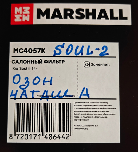 Данный фильтр приобретался для Kia Soul 2, подошёл просто идеально !