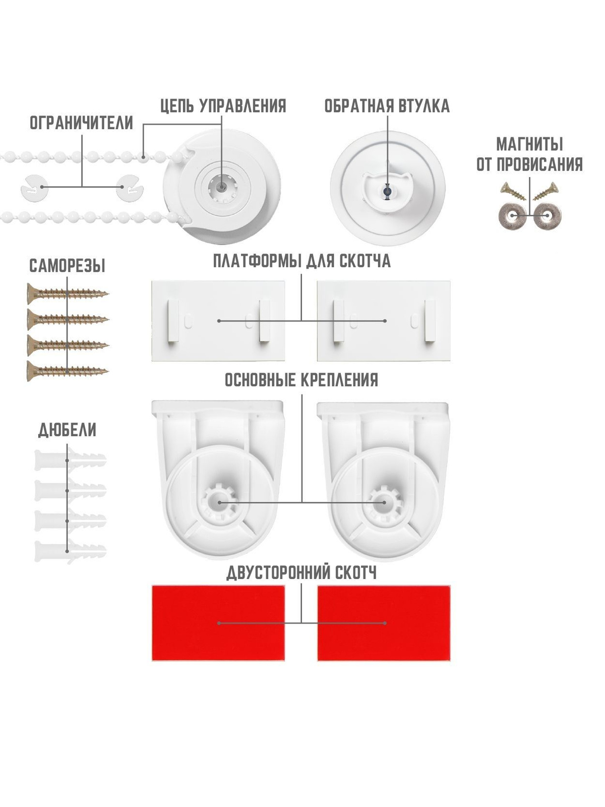 Главный минус: заказывала ширину 62 и 56 одного цвета. Пришли разного. Инструкции в комплекте нет. Инструкция на озоне общая, без особенностей креплений. Для чего выступающая деталь на крепеже, который приклеивается, так и не поняла. Креплений на открывающееся окно нет.