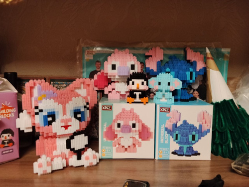Добрый вечер! Ангелов из мультфильма «Лило и стич» у нас были в двух видах, внешне они не отличались. Различия были в количестве мини-блоков и фирмы производителя. В данном товаре предусмотрены запасные мини-блоки, пожтому уоличество отлается от предыдущей партии. С уважением, TD Blocks!