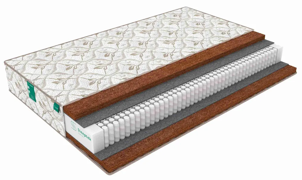Ортопедическая модель с одинаково жесткими сторонами. Основой данной модели является блок независимых пружин S1000, в котором каждая пружина помещена в индивидуальный чехол. Блок точечно подстраивается под форму тела спящего и равномерно распределяет нагрузку. В качестве наполнителя использована с обеих сторон латексированная койра кокоса. Между пружинным блоком и слоями койры находятся защитные листы термовойлока, которые не позволяют пружинам повреждать наполнитель при высоких нагрузках и, таким образом, продлевают срок службы матраса. Независимые пружины в сочетании с плотной кокосовой койрой придают матрасу высокие ортопедические свойства. Жесткая поверхность не проминается под нагрузкой, исключая эффект «гамака». Матрас хорошо поддерживает позвоночник, помогает быстро убрать напряжение в мышцах и суставах и сохранить анатомически естественное положение тела во время сна. По периметру матраса предусмотрен короб из плотной пены, что продлевает срок службы изделия – матрас не сминается, когда вы садитесь на его край. Оба материала хорошо вентилируются, не задерживают влагу, пыль и неприятные запахи. Общая высота модели – 21 см. Максимальная нагрузка – 140 кг. Матрас поставляется в трикотажном чехле, простеганном на объемном холлконе 200 грамм. особенность холлкона в том, что его волокна расположены вертикально, это придаёт дополнительный комфорт и упругость .Такой чехол выглядит более пышно и роскошно в отличие от обычных синтепоновых аналогов. Высота модели – 21 см. Максимальная нагрузка на одно спальное место – 140 кг. Жесткость - Жесткий. Матрас Двусторонний с одинаковой жесткостью. Состав матраса: Кокосовая койра 3 см,Термовойлок НПБ S1000 Термовойлок,Кокосовая койра 3 см,Трикотажный чехол Perfect ( 250гр холкона) ( 200гр холкона).