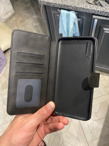 Функциональность полностью сохранена, так как все технические отверстия под кнопки, камеру или гарнитуру выполнены идеально по размеру и расположению. Дополнительно внутри передней откидной панели чехла имеется отсек для хранения карт, визитки или денег.