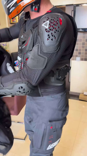 Характеристики: — Оценка Leatt: 19 баллов — Сертификаты: EN1621-3 уровень 2 (грудь), EN1621-2 уровень 2 (спина), EN1621-1 (плечи и локти) — Международные стандарты: FIM, FFM — Материал: 3DF AirFit + жесткий каркас — Вентиляция: панцирь с прорезями + AirMesh — Пояс: эластичный, защита почек — Вес: от 2,1 кг — Рост: 160–196 см