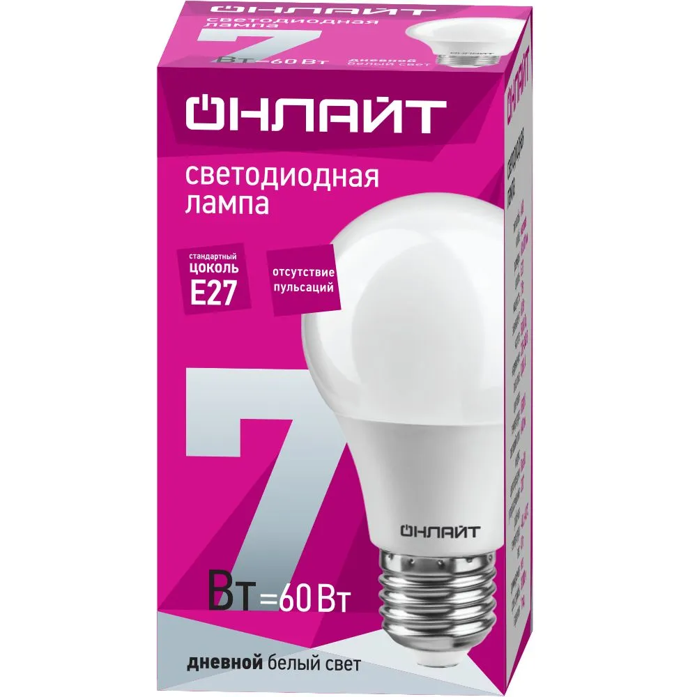 Лампа светодиодная 7Вт 6500К Е27 груша ОНЛАЙТ 61 139 #1