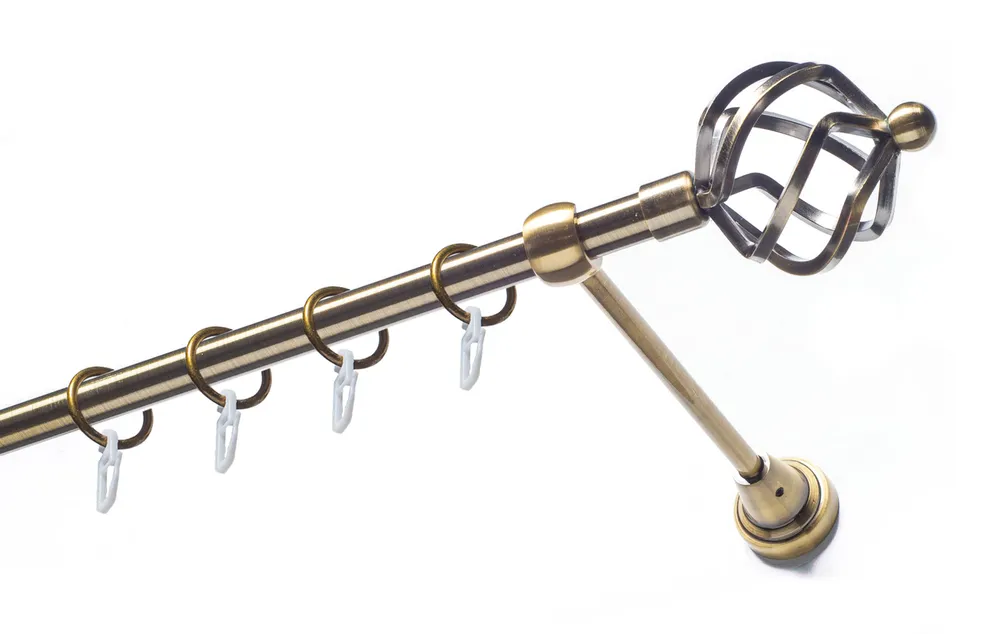 Однорядный карниз AICITY цвета Антик (золото старое, бронза) с наконечниками Булава - идеальное решение для создания уютной атмосферы в зале, кухне, детской, спальне, гардеробе, ванной или в любой другой комнате. Вы можете установить легкие тюли, занавески, портьеры и другие виды штор. Установка кованого карниза является универсальным решением, так как он подходит как для штор на люверсах, кольцах и петельной ленте, так и для других способов пошива штор.