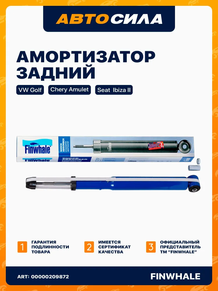 Газомасляные амортизаторы подвески Finwhale для автомобилей Чери Амулет А15, Бонус А13, Фольксваген Гольф 2(19E, 1G1), Фольксваген Гольф 3(1H1).