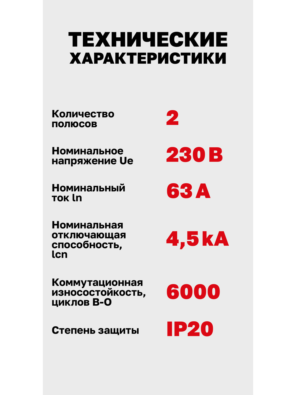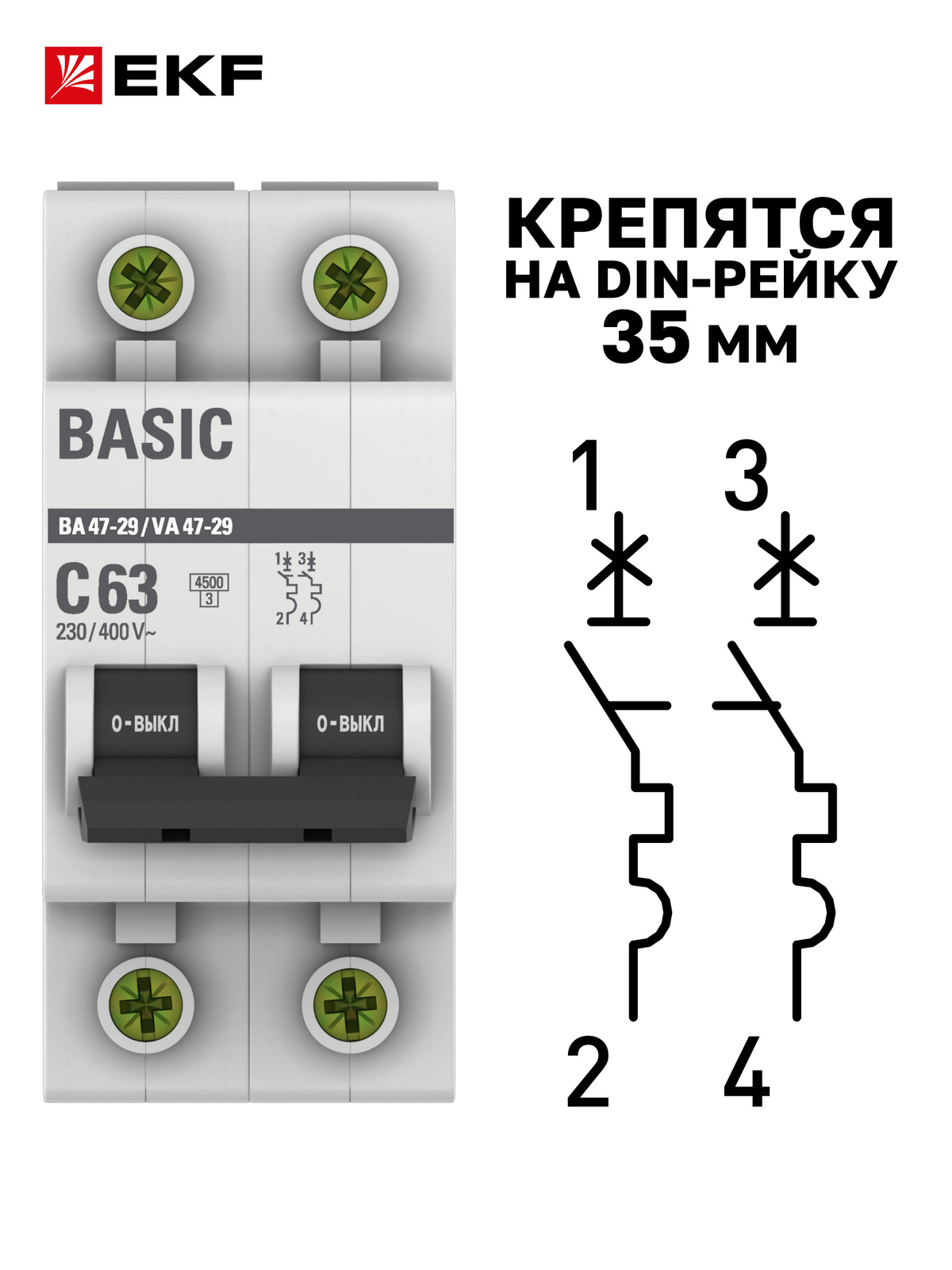 Автоматический выключатель 2P 63А (C) 4,5кА ВА 47-29 Basic