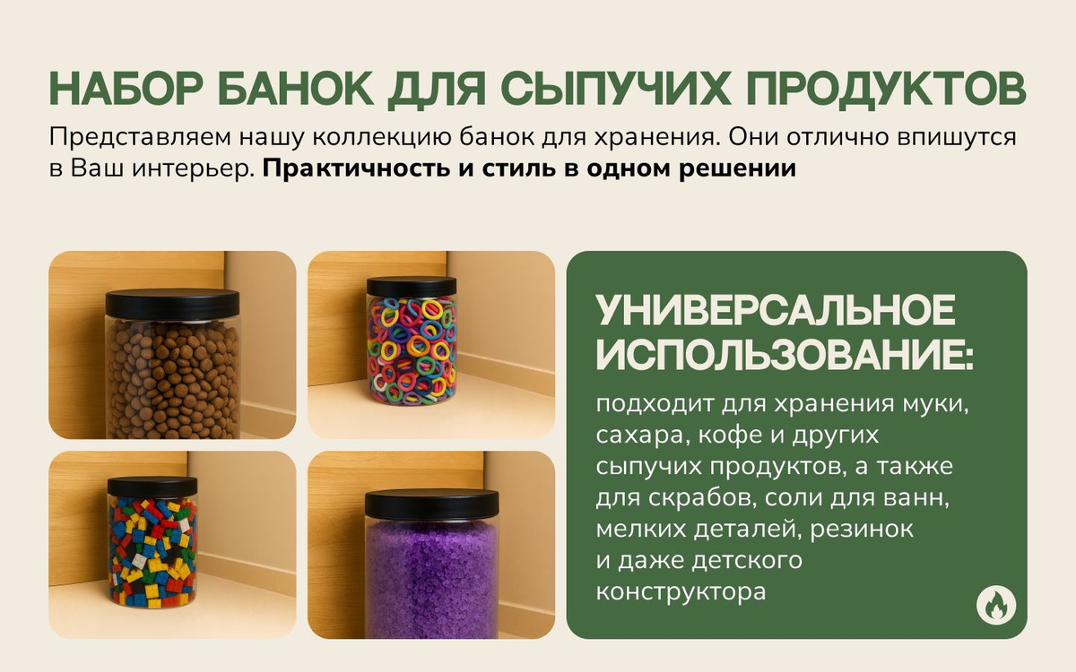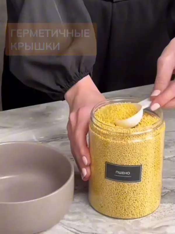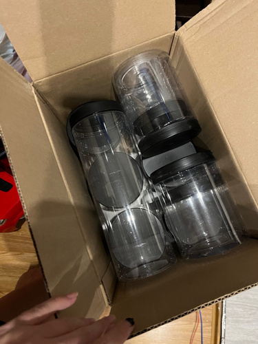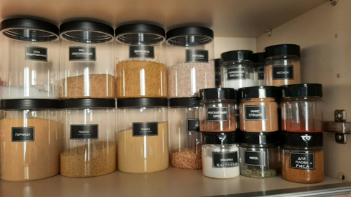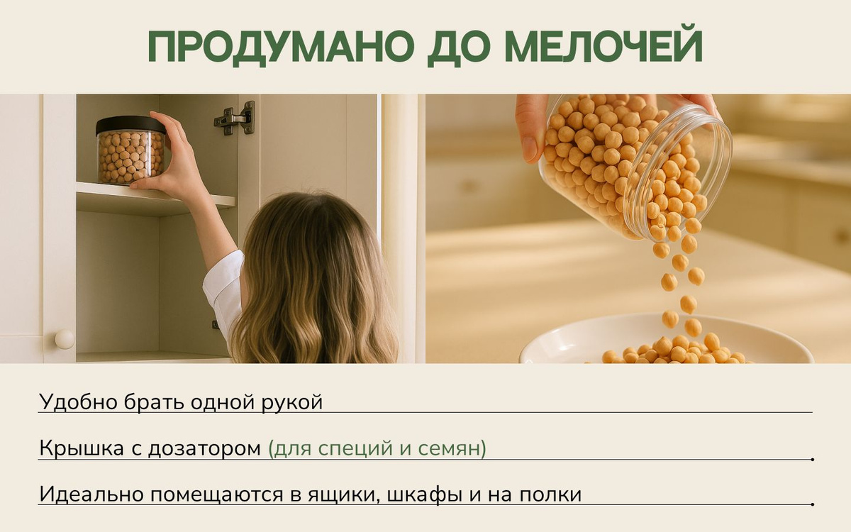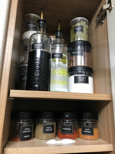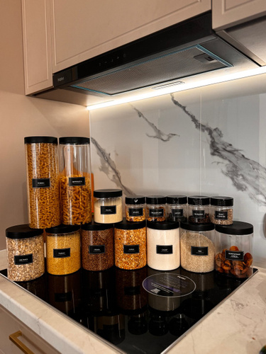 Банки - 16 штук, Крышки - 16 штук из пищевого пластика, Мерная ложка; Набор стикеров (120 шт.) - полипропиленовая пленка (не подлежит вторичной переработке)