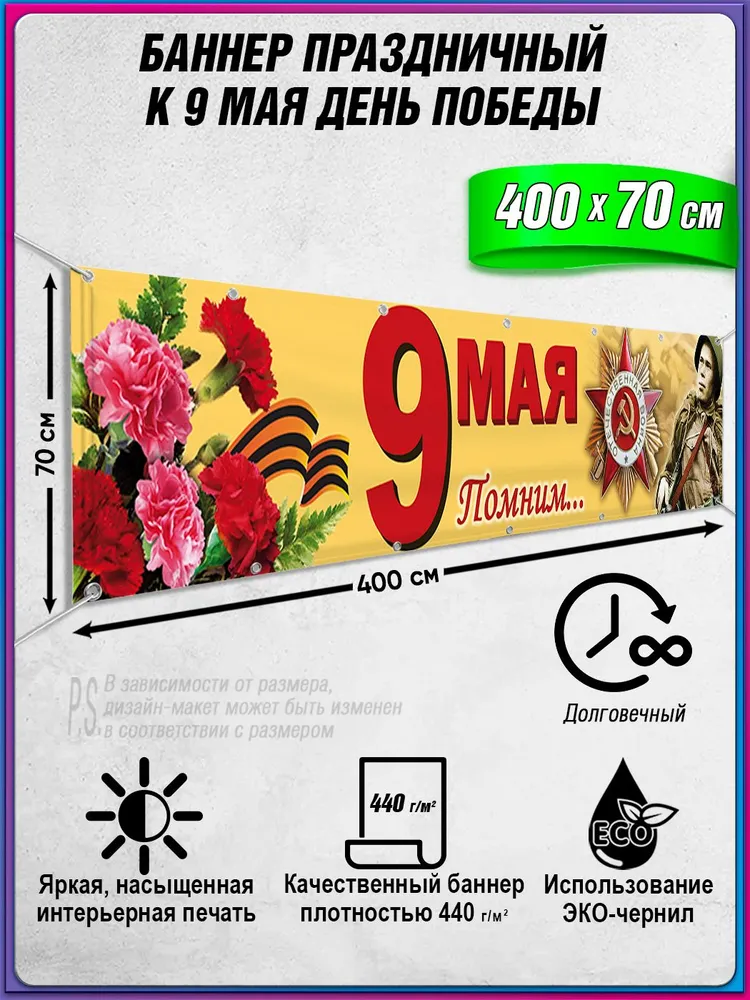 Баннер на 9 мая / Растяжка ко Дню Победы / 4x0.7 м. #1