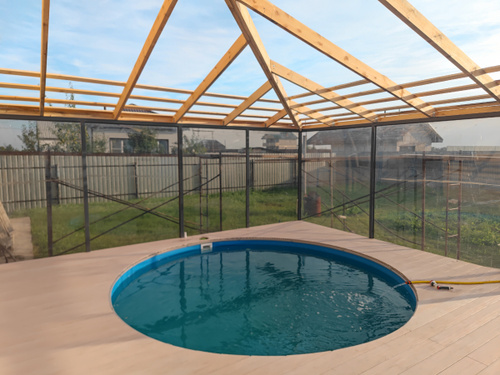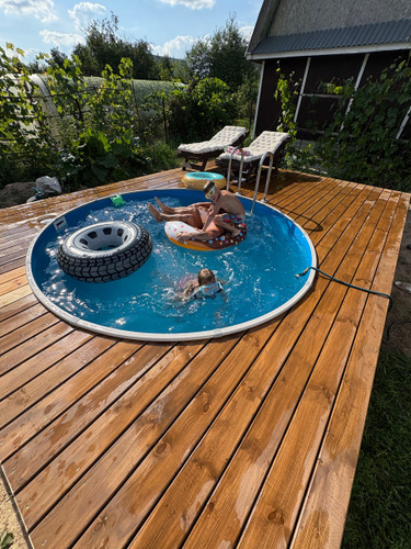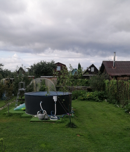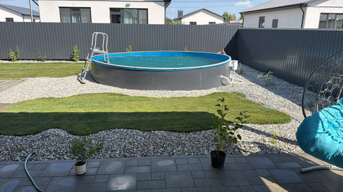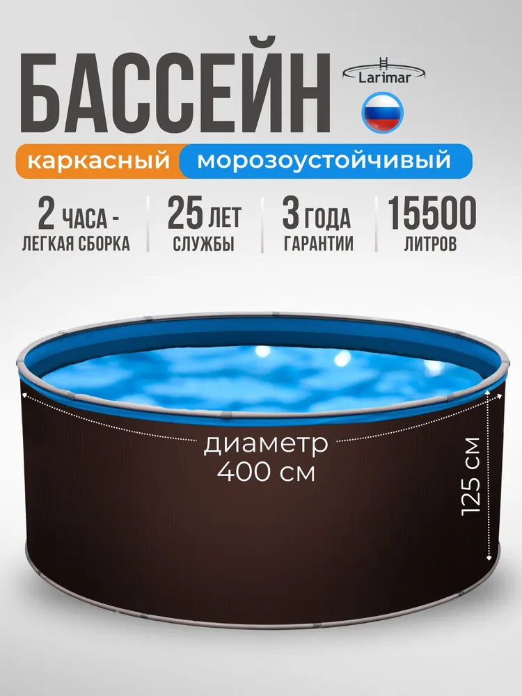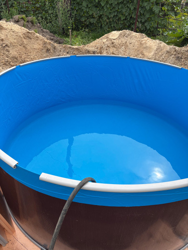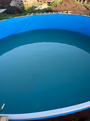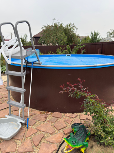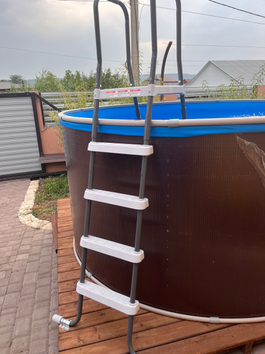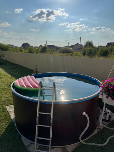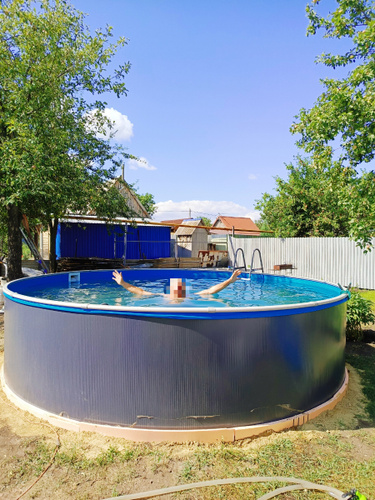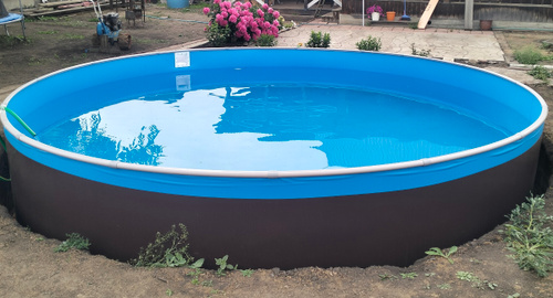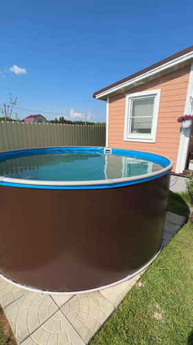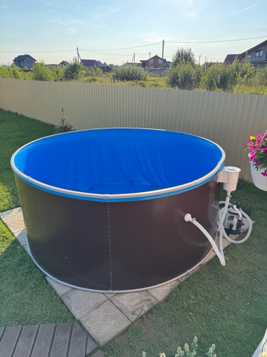 Стальной лист ( 0,5мм) Чашковый пакет ПBХ (цвет голубой 0,4мм) Форcунка подачи воды Скиммер (устpойство для сбора грязевых частиц с поверхности воды) Фурнитура и крепежные элементы Инструкция по сборке бассейна (на русском языке).