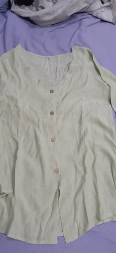 блузка в принципе хорошая,но зашитый низ сильно напрягает,т .к. приходится надевать через голову.Пуговицы периодически расстёгиваются,что приводит к неловким ситуациям