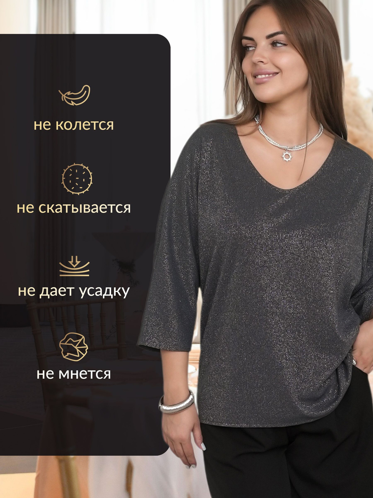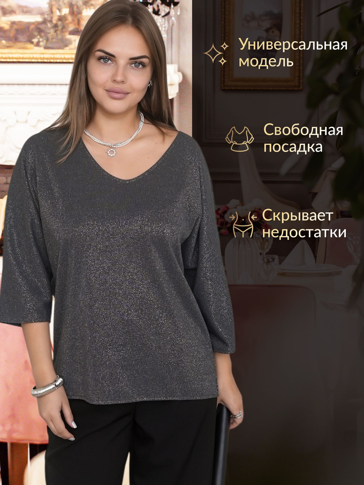 Вневременная классика и комфорт на каждый день ✧ Наша блуза с люрексом представлена в размере плюс сайз, что позволяет каждой девушке почувствовать комфорт в каждом движении.