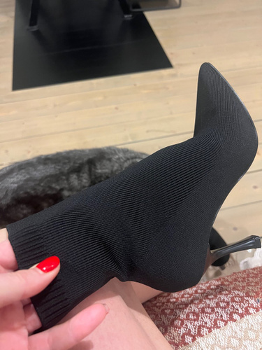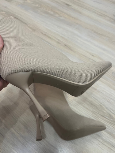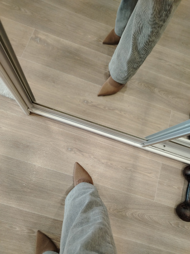 Очень красивые и женственные. Подходят к юбкам и брюкам/джинсам. Ношу обычно 36-й размер (23 см), но здесь подошёл 37-й (возможно из-за моей широкой стопы). На широкую стопу с косточками сели - не давят. Колодка удобная, ноги не устают. Каблук 10 см. Летаю на работе. Они идеальные 👍 Если запылятся - отряхиваю мягкой щёткой.