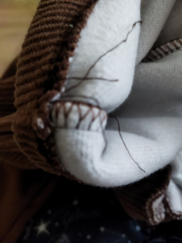 Спасибо! Иначе оценить не могу. Шов на талии распускается и не в одном месте. Бирючины не ровные, их внешняя сторона значительно длиннее, чем внутренняя. Это портит внешний вид изделия. Тёплая ткань мягкая, оставила для дачи.