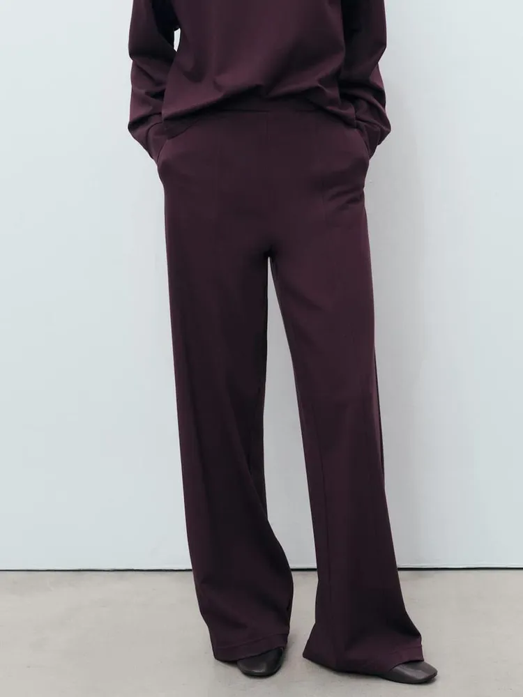 Брала брюки со свитшотом, очень крутой осенний комплект. Брюки в размер, широкие штанины из тяжелой ткани, состав приятный- не стоит колом, не "тряпочка", а именно струится. Цвет на фото имеет холодный фильтр, как будто у костюма есть фиолетовый оттенок. Это не так, цвет, конечно же, очень красивый, сложный, но он все-таки, что-то вроде гранатового...  Читать полностью