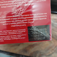 Чай черный байховый, плоды шиповника, яблоко сушеное, лимонное сорго, ароматизатор "тропические фрукты", лепестки василька.