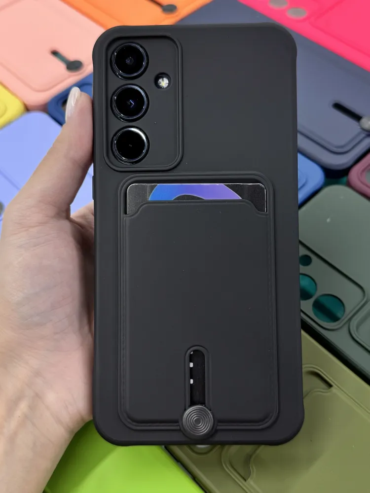 Чехол на Samsung Galaxy A15 черный с карманом для карт.