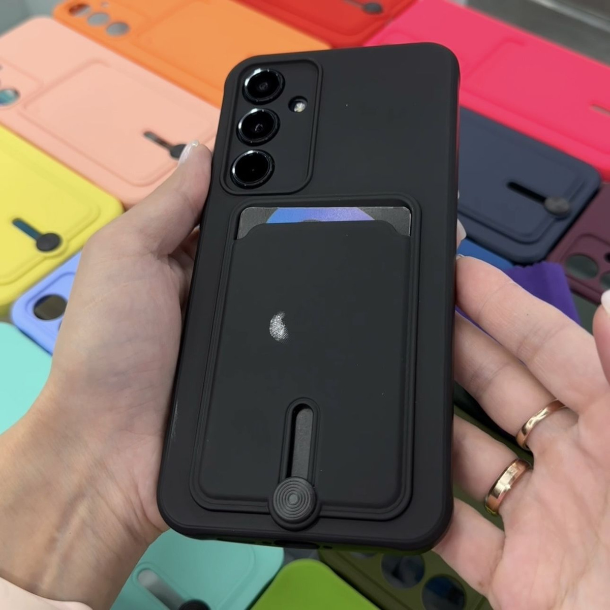 Чехол на Samsung Galaxy A15 черный с карманом для карт. #1