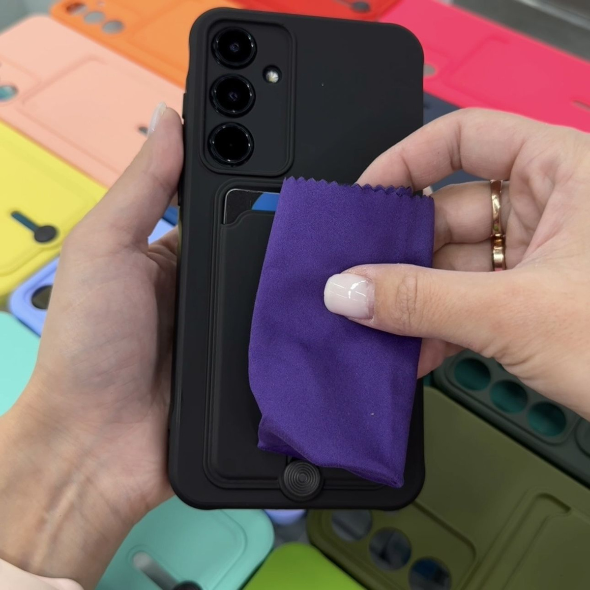 На чехле могут оставаться следы от пальцев.