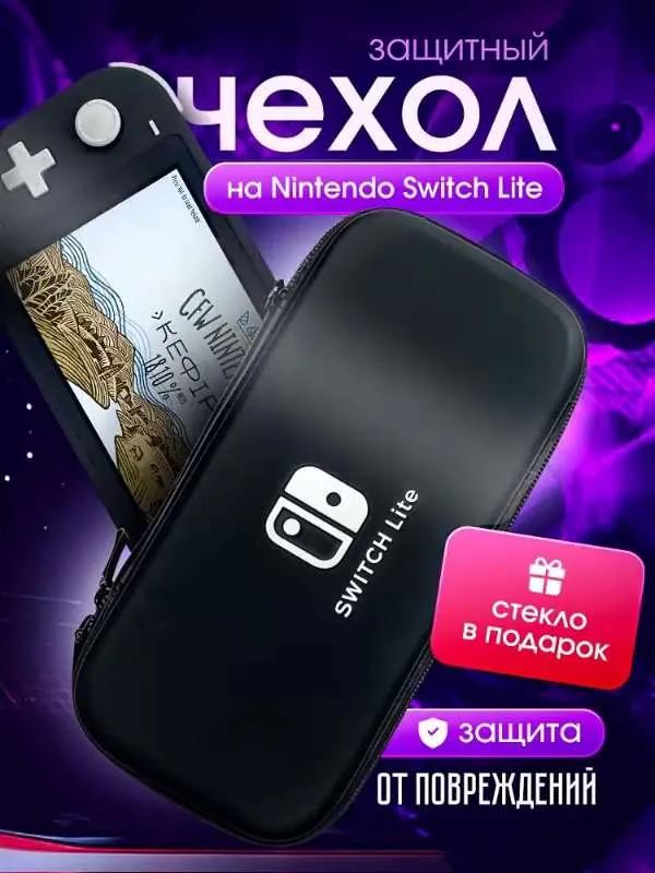 Чехол, защитное стекло в подарок на Nintendo Switch lite