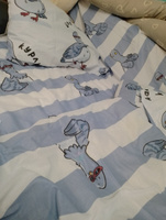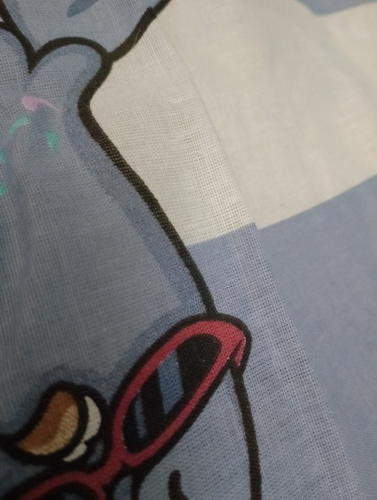 Прикольный комплект, ткань в меру плотный... Яркий рисунок, даже не поленял после стирки(стирала при рекомендованной температуре)...