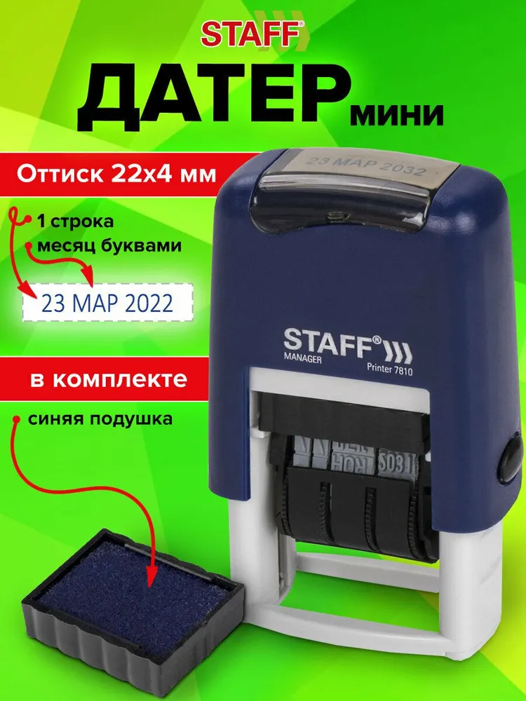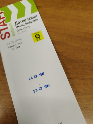 Приветствуем Вас! Датер-мини Staff предназначен для указания даты с месяцем цифрами, но без года. Рекомендуем добавить его в корзину или оформить заказ прямо сейчас, чтобы гарантировать покупку. 🗓️