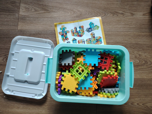 покупала на подарок ребёнку. контейнер для хранения удобный. размер частей оптимальный для 3+. самим понравилось конструировать.