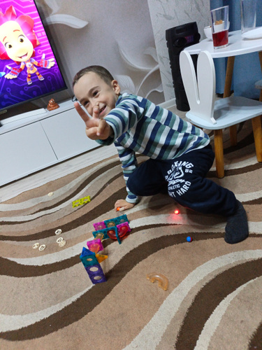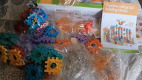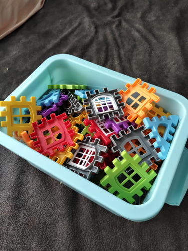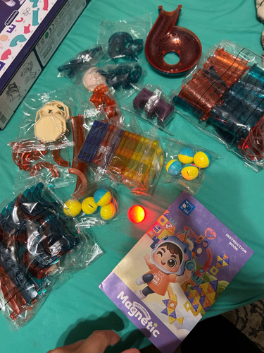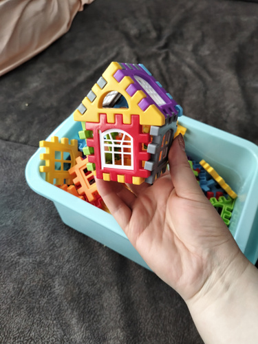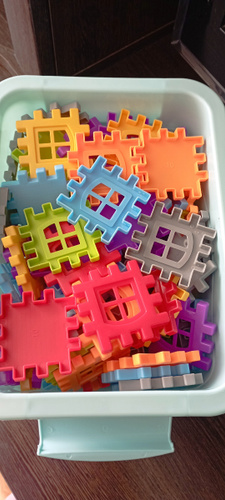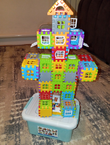 Деталей нет столько сколько показывает на карточках. Толком ничего нельзя построит. Это все что смогли собрать. Осталось куша прочзраяных и белых штук. Придется заказать второй набор с разноцветными деталями. Не рекомендую к покупке