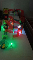 Очень неустойчивая конструкция, ребёнок старается, что-то собирает, но все в один момент рушится. Пластик тоже совсем не крепкий, пока собирали появились две трещины. Как-то все не доработано... Подсветки в конструкторе не оказалось, хотя на коробке она обозначена. Вообщем конструктор интересен, но качество оставляет желать лучшего..