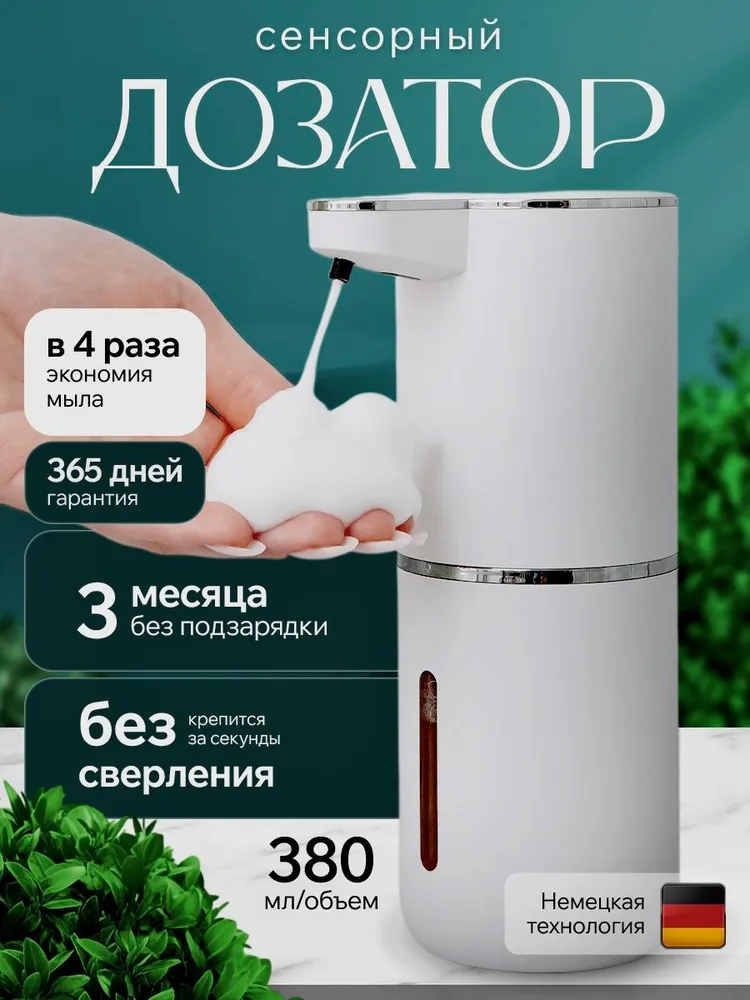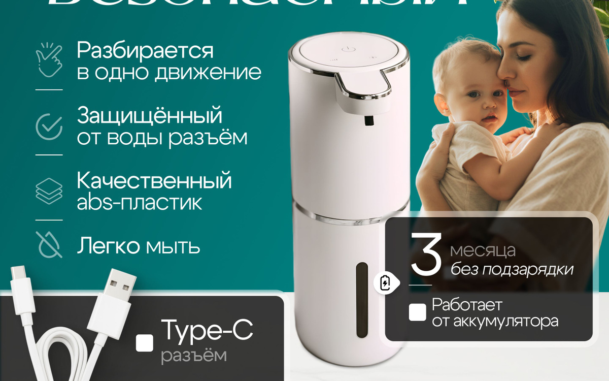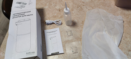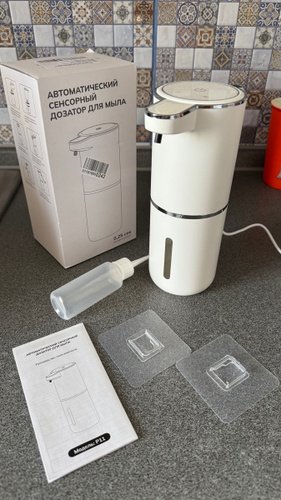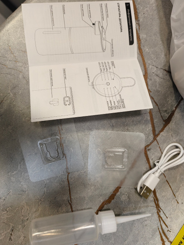 Диспенсер - 1 шт USB Type-c - 1 шт Крепление на стену - 2 шт Пластиковый дозатор для заливки мыла - 1 шт Инструкция - 1 шт