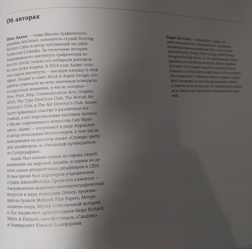 Шон Адамс — глава Школы графического дизайна ArtCenter, основатель студии Burning Settlers Cabin, входит в список сорока наиболее влиятельных дизайнеров мира. В переработанной и дополненной версии его книги, выдержавшей несколько переизданий на Западе, просто и доступно объяснены основы теории цвета, раскрыто культурное значение цветов, ключевые правила работы с цветовой палитрой, представлены знаковые цветовые системы в истории искусства и дизайна, особенности цветовосприятия и взаимодействия различных оттенков.