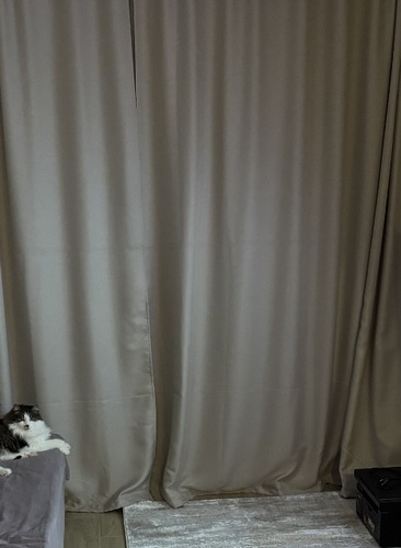 Отличные шторы, аккуратные швы. Искал шторы с неполным блек-аутом и при этом чтобы не светило солнце на солнечной стороне. Отличное решение, понятно, на улице день или ночь и при этом даже при ярком солнце на улице, в комнате темно.