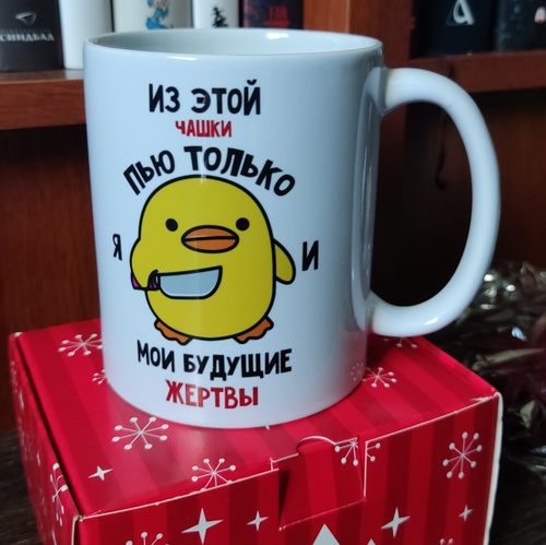 Кружка для чая и кофе с принтом "Из этой чашки пью только я и мои будущие жертвы" Кружка для чая ,, с утенком,, .Керамическая кружка большая белая с надписью станет отличным и прикольным подарком, поднимет настроение, преподнесет яркое впечатление. Керамическая именная чашка для чая, кофе, молока и других напитков впишется в любой интерьер на работе и дома. Кружка с приколом мужчине и женщине поднимет настроение и оставит приятные впечатление о Вас. Кружка с надписью и принтом оригинальный и памятный подарок на любой повод. Чашку для чая можно использовать в микроволновой печи и холодильнике, мыть в посудомоечной машине. Объем 330 мл. Наша большая кружка с надписью будет радовать Вас каждый день! Чашка из керамики практичная, не бьётся, безопасна для детей, не царапается, легко моется, долго сохраняет тепло, как большие кружки с двойными стенками, имеют высокую прочность, термостойкая. Чашка с надписью идеальна, как подарок на день рождения, юбилей, Новый год, 23 февраля, 8 марта, новоселье. Кружка в подарок/ кружка подруге/ кружка другу/ подарок
