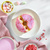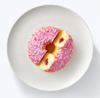 мука пшеничная хлебопекарная высшего сорта, джем (сахар, пюре лесных ягод (клюква, черника, земляника, малина), вода питьевая, крахмал кукурузный, загуститель - пектины, регулятор кислотности – лимонная кислота, ароматизатор, консервант - сорбат калия, краситель – кармины), вода питьевая, глазурь жировая со вкусом лесных ягод (сахар, жир специального назначения (пальмовое масло, пальмоядровое масло, эмульгатор лецитин соевый), заменитель масла какао нетемперируемый лауринового типа (рафинированный дезодорированный гидрогенизированный пальмоядровый стеарин, эмульгаторы: Е492, лецитин соевый), сухое обезжиренное молоко, сыворотка сухая молочная, краситель натуральный cвекольный красный (содержит регулятор кислотности Е330), эмульгатор лецитин соевый, ароматизатор (содержит антиокислитель Е300), регулятор кислотности Е330, красящий экстракт спирулины (содержит регулятор кислотности Е331iii), жир специального назначения: кондитерский (растительные масла рафинированные дезодорированные: пальмовое, пальмовый олеин, подсолнечное), изделия кондитерские сахаристые не содержащие какао: посыпки вермишель-разноцветная (сахар, негидрогенизированный кокосовый жир, концентраты (редьки, лимона, чёрной смородины, спирулины, яблока), стабилизатор: декстрины, глазирователи (Е901,Е904), агент антислеживающий Е553iii, глюкозный сироп), сироп глюкозно-фруктозный, смесь сухая для дрожжевых пончиков (мука соевая обезжиренная, мука пшеничная, эмульгаторы (Е471, Е481, лецитин соевый), загустители (Е412, Е1414) ,регулятор кислотности Е450i, разрыхлитель E500ii, молоко сухое, ферменты микробного происхождения, ароматизатор ванилин, краситель - каротины, вещество для обработки муки Е920), сахар, дрожжи хлебопекарные прессованные, соль. Противопоказано людям с индивидуальной непереносимостью глютена; молока; сои. Продукт может содержать следы яичных продуктов, орехов, диоксида серы и сульфитов. Не содержит ГМО!