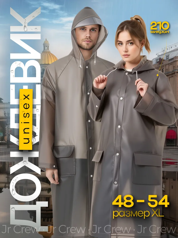 Дождевик мужской имеет покрой оверсайз для свободного передвижения. Есть кнопки на рукавах для дополнительной защиты от непогоды, 2 кармана для мелочей и широкий козырек, который не позволит каплям намочить лицо.