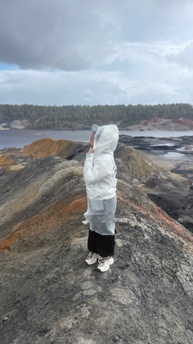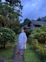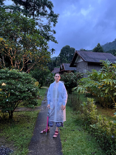 ну я протестировала его под дождем и есть вопросы 🤔 козырек и вообще капюшон настолько огромный, что просто вообще на вол лица закрывает все и невидно ничего 🙈 узкий внизу, когда идешь с него вода стекает на кроссовки и штаны все мокрое через 10 минут в общем так его просто накинуть и куда то добежать ок, ходить в нем нет