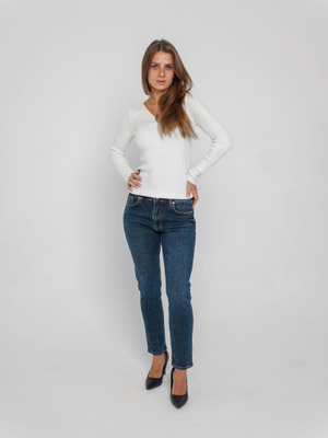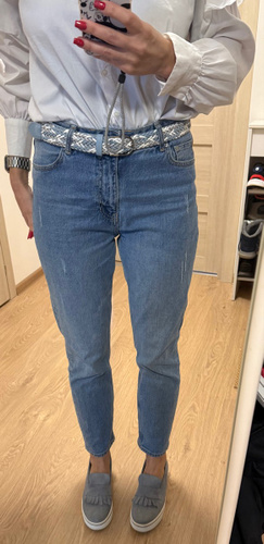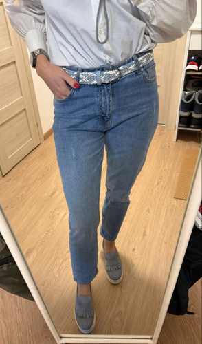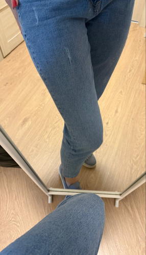 Джинсы бойфренды, посадка не совсем высокая, но выше, чем на бедрах. В бедрах широкие, свободные, болтаются во всех местах, в паху слегка висят (на то они и бойфренды!). На любителя. Мне подошли (ОБ 98, ОТ 72). Цвет не синий, а скорее серо-синий. Поставила 4 звезды, т.к. не могу сказать, что прям в восторге. Просто штаны.