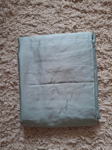 шикарная простыня: гладкая, мягкая, шелковистая. К сожалению мне не подошла по цвету к комплекту. Цвет спокойный холодный, ближе к мятному. Рекомендую.