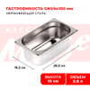 Гастроемкость из нержавеющей стали Kitchen Muse GN 1/4 65 мм, мод. 814-2, размер 265х162х65 мм, объем 1,8 л.