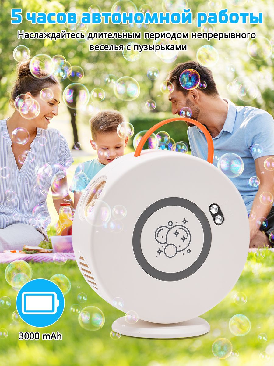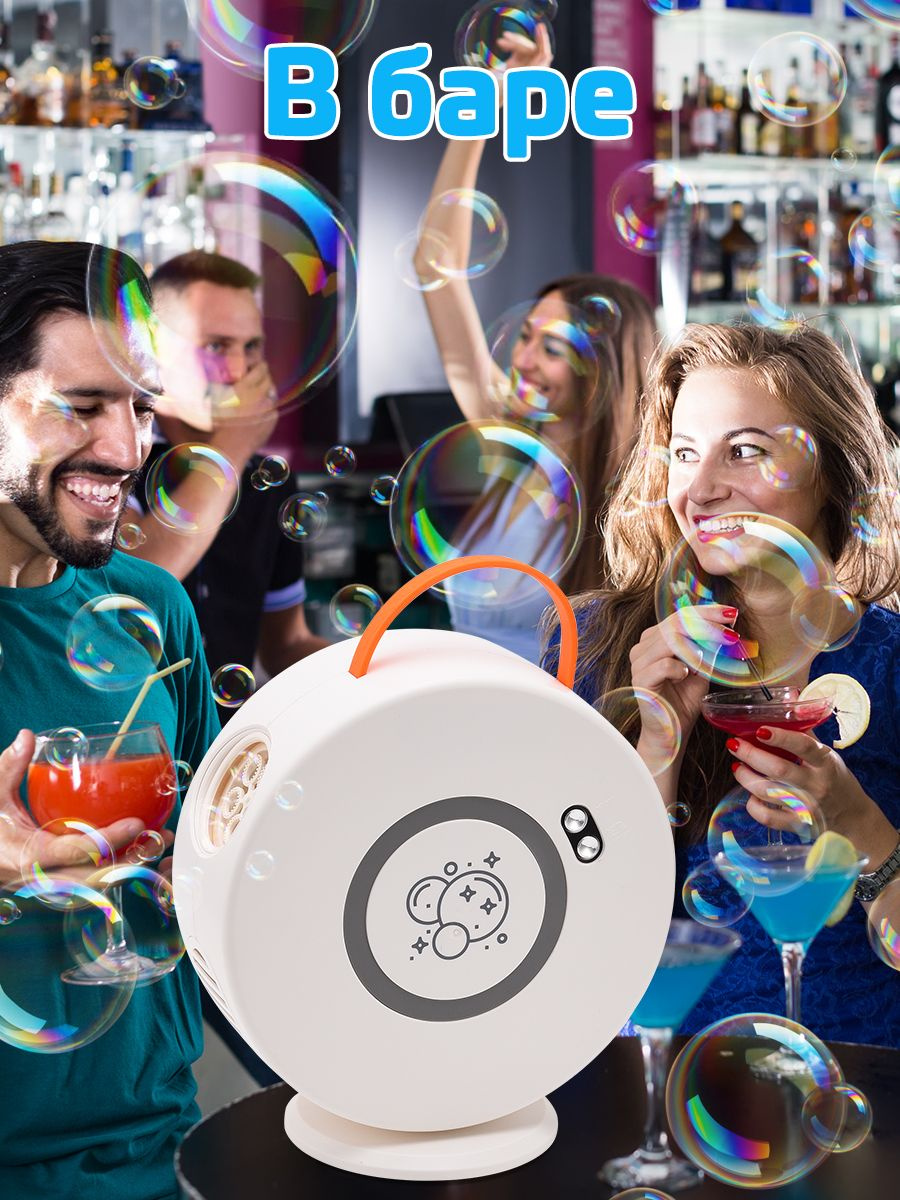 Классный генератор без явного громкого шума и без музыки, пузырей выдаёт много и средние и мелкие, вращается и на 180 и на 360, батарея держит заряд хорошо 👍 очень компактный как сумочка-чемоданчик
