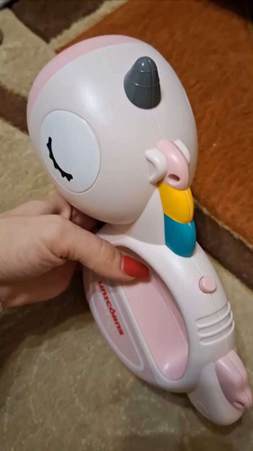 Все работает. Музыка играет. Дочь 8 лет в восторге, хотя покупали годовалой. Младшая никак не поймет, что не надо постоянно жать на кнопку. Аккумуляторы приходят разряженные.