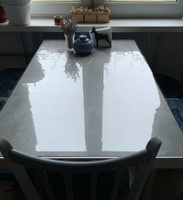 Жидкое стекло на стол оптимальной плотности. Гибкое стекло на стол защитит Ваш стол, подоконник, столешницу, барную стойку от износа, царапин, сколов, загрязнений. Придаст замечательный глянец поверхности. Жидкое стекло подойдет как для кухонного, так и для письменного стола, что позволяет писать без дополнительной подложки. Во избежание усадки материала мы поставляем гибкое стекло с небольшим запасом 1-1,5 см. Жидкое стекло на стол прозрачное легко подрезать с использованием простых ножниц, либо канцелярского ножа. Перед подрезанием рекомендуем уложить прозрачную скатерть на покрываемую поверхность и дождаться полного распрямления. Запрещается нагрев свыше 100 градусов, а также глажка скатерти утюгом и отпаривателем. Скатерть силиконовая на стол обладает умеренной термостойкостью, выдерживает тарелки с горячей едой и кружки с горячими напитками. Мягкое силиконовое стекло является идеальной защитной и прозрачной накладкой на вашу скатерть.
