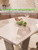 постелила на стол скатерть, сверху укрыла прозрачным бесцветным гибким стеклом и обрезала его вровень с краями столешницы, чтобы твёрдые острые края стекла не свисали по краям. оно прилипло очень ровно, без пустот. но сначала два дня лежало на столе неприклееннное, чтобы распрямилось.