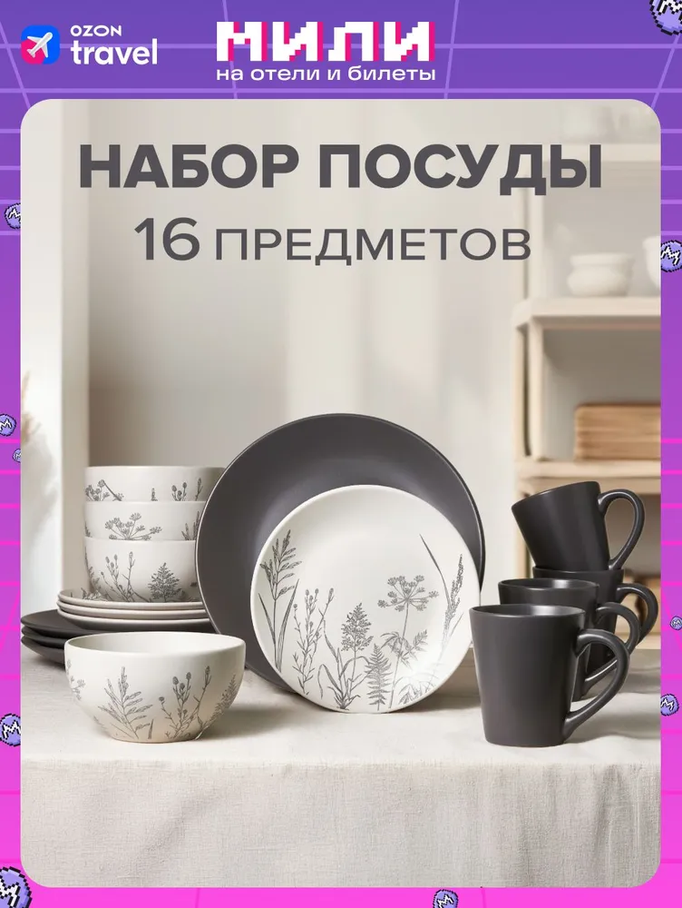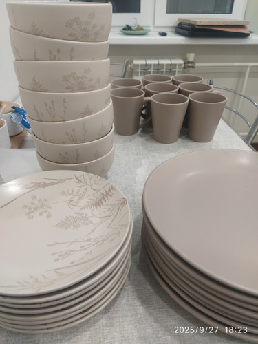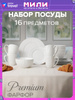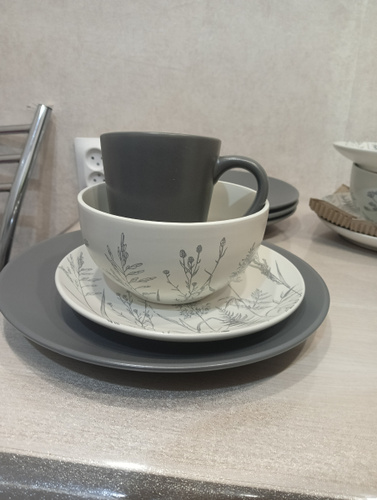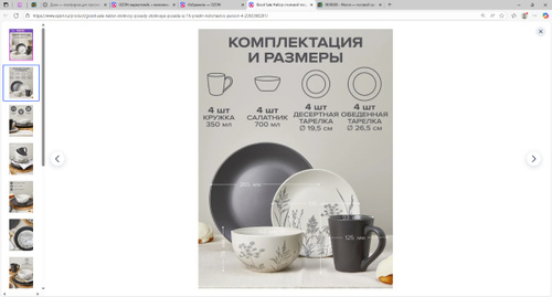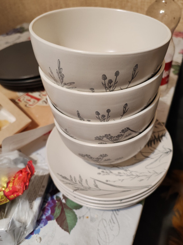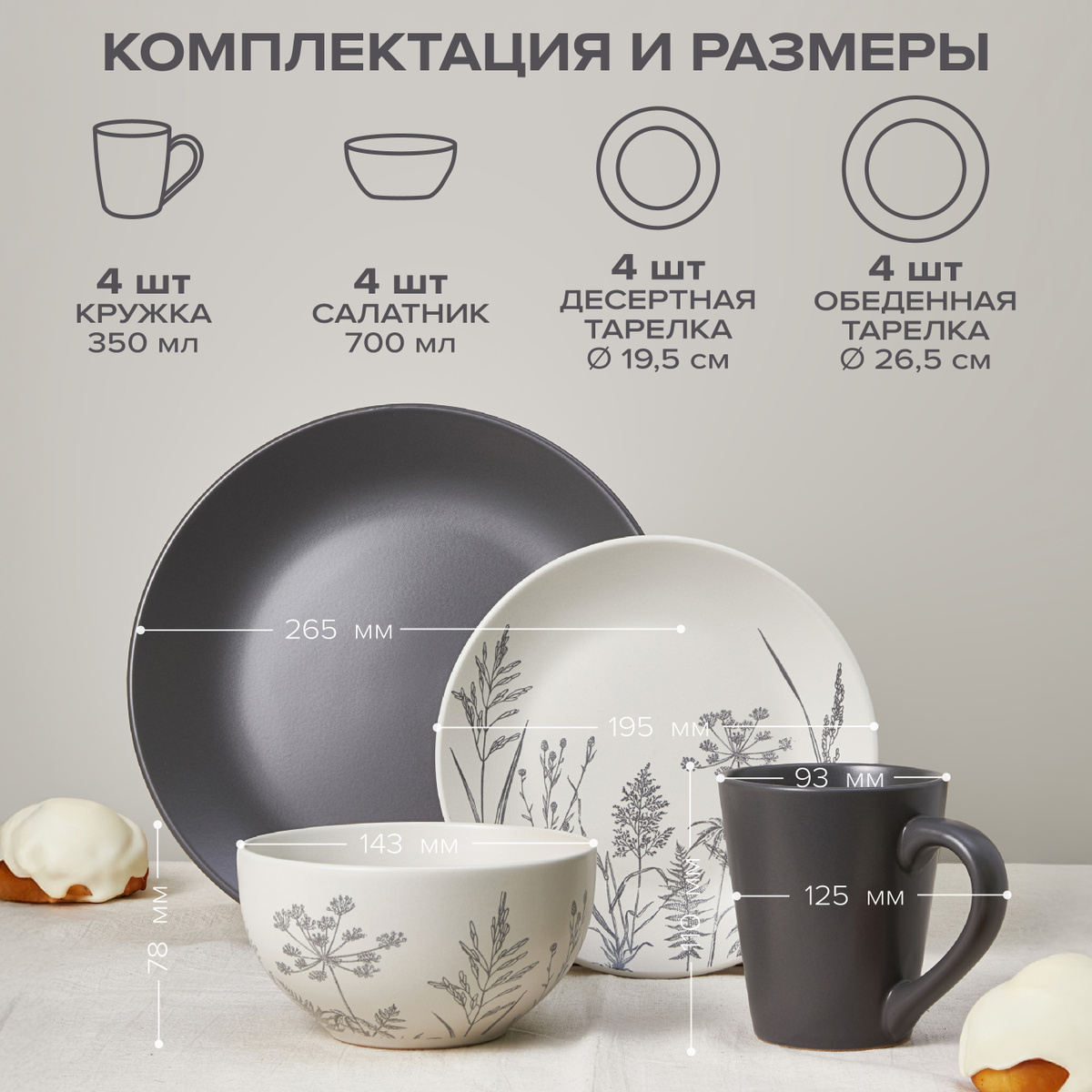 Тарелки обеденные - 4 шт. Тарелки десертные - 4 шт. Салатники- 4 шт. Чашки - 4 шт.
