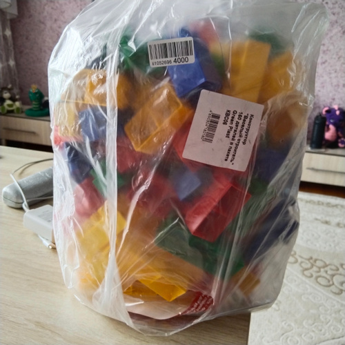Отличный конструктор, удобно, что есть специальный мешочек, крупный, не пахнет.Ребенок будет доволен.Рекомендую